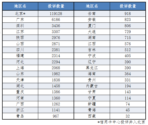 从投诉分布区域看,投诉量较高的是北京、广东和深圳等地区,2022年我行受理投诉地区分布情况如下表所示: